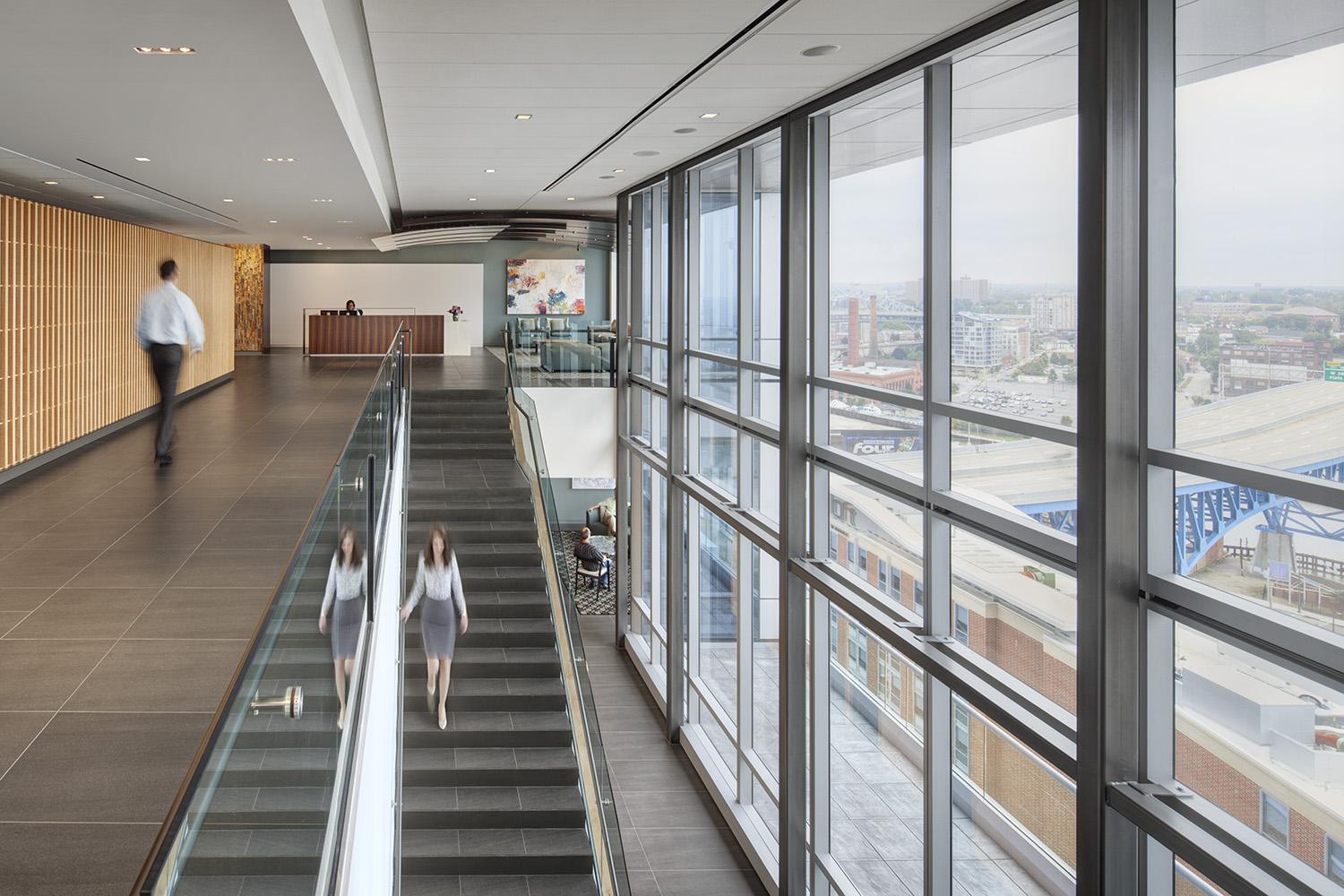 In 2013, Environments 4 Business in collaboration with architect ASD | SKY created a warm, bright office space for this downtown Cleveland Law Firm amongst a storm.
